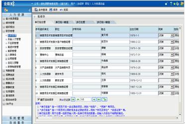 系统提供员工人事信息维护功能,在可引用国家人事档案信息标准基础上,还可自定义新业务类别的职员档案资料表和字段,适应不同类型企业对员工资料的记录要求,保证向其它HR业务模块灵活提供规范的基础数据。另外系统还提供对招聘、配置、培训、考核、激励等所有人力资源业务信息的记录,实现对员工在企业全任职生命周期信息的管理。