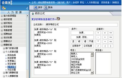 系统中提供了公式平台设计器,可设计复杂的公式,并可进行公式正确性校验,公式中可引用职员属性、工资项目、常量、函数等元素,并可用这些元素进行条件判断,可按不同的计算规则分别设置公式集,在工资计算时选用。这样的公式平台可以帮助企业实现绩效工资、计时计件工资、定额工资等多种薪酬核算方式,实现不同公司不同类别员工可能复杂多变的薪酬计算方法。