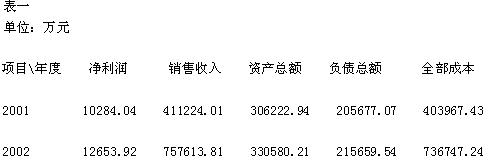 该公司2002年大幅度提高了销售收入,但是净利润的提高幅度却很小,分析其原因是成本费用增多,从表一可知:全部成本从2001年403967.43万元增加到2002年736747.24万元,与销售收入的增加幅度大致相当。下面是对全部成本进行的分解: