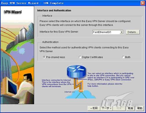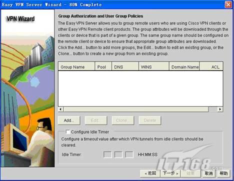 基于SDM的Easy VPN配置实例 Easy VPN的配置大部分工作都在VPN Server上完成,减轻了配置工作。在Cisco的设备中,比如,1800系列、2800系列和3800路由器系列,可以不使用命令的方式来完成配置。在这些新系列的设备上可以用SDM(思科路由器和安全设备管理器)软件来配置。 1. Cisco SDM >Cisco SDM 是一种直观且基于 Web 的设备管理工具,用来管理以 Cisco IOS? 软件为基础的路由器。Cisco SDM 可通过智能向导简化路由器及安全配置过程,对于客户及 Cisco 合作伙伴而言,有了这些向导,不必对命令行接口(CLI)有专门的了解,就能快速便捷地部署、配置和监控 Cisco Systems路由器。 SDM在设备上默认HTTPS管理IP是10.0.10.1。所以如果使用默认配置登录的话,一定要保证PC的地址在10.0.10.0网段。SDM的默认用户名是cisco,密码也是cisco 。 SDM程序既可以安装在PC上,也可以安装在路由器上。安装在PC上能节约路由器的内存并且可以用它来管理其他支持SDM管理的路由器,但是这种模式下不能执行恢复默认的操作。安装到路由器时,基本安装需要大约4~5MB的Flash空间,Cisco SDM Express组件需要1.5MB的Flash空间,只用于路由器的初始化配置无须安装。 提示: IE默认禁止网页访问本机资源,需要修改IE的安全设置。选择IE“工具”菜单,选择“Internet选项”,切换到“高级”选项卡,在“设置”里找到“允许活动内容在我的计算机上运行”,启用该功能;另外在“隐私”选项卡中取消“打开窗口阻止程序”选项。 SDM下载地址为 http://www.cisco.com/pcgi-bin/tablebuild.pl/sdm(需要CCO账号),下载并解压SDM-V21.zip,运行Setup程序即可进行SDM的安装。在安装SDM之前要求安装JRE 1.5,如果尚未安装,可以到Sun公司网站下载。 将SDM安装到路由器之后,路由器必须进行以下配置才能支持SDM管理工具。 ip http server //允许HTTP登录 ip https server //允许HTTPS登录 ip http authentication local //指定本地认证 ip http timeout-policy idle idle-number life life-number request request-number //修改Web接口超时参数 user username privilege 15 secret 0 secret //必须是Secret,不可以用Password关键字 如果需要Telnet或者Ssh远程登录设备,则增加以下配置命令。 line vty 0 4 //路由器型号不同VTY的数量也不同 login local transport input telnet ssh //允许Telnet和Ssh 如果以上步骤配置正确完整,则在IE中输入http://“路由器IP地址”,就可以开始使用SDM了。如果是第一次登录SDM,则提示修改默认用户名cisco ,以及默认密码cisco。 提示: 具体启用配置SDM软件的方法,请查阅产品随机手册和思科网站上的相关信息,相关资料。使用SDM配置VPN的前提是要能保证配置端可以通过HTTPS访问路由器的Web管理界面。值得庆幸的是SDM如今已经支持中文版本。 2. SDM配置Easy VPN的步骤 3. 下面介绍使用思科安全设备管理器(SDM)将Cisco路由器配置成Easy VPN Server。一旦思科路由器配置完成后,可以使用思科VPN客户端(Cisco Systems VPN Client)进行验证。 第1步:从左侧主操作窗口选择Configure→VPN→Easy VPN Server,然后单击Launch Easy VPN Server Wizard,启动Easy VPN服务器向导。 第2步:在弹出的对话框单击【Yes】按钮,这里提示如果对路由器配置Easy VPN Server需要启用AAA认证。请单击【Yes】按钮继续进行配置。 第3步:正式进入Easy VPN配置向导。 第4步:首先要求选择应用Easy VPN的接口,客户端连接终止及身份验证的方法,如图所示。 图:启动VPN接口和认证类型 第5步:单击【下一步】按钮,将配置Internet密钥交换(IKE)的策略,单击【Add】按钮,添加新的策略,如图14-15所示。 提示: 配置VPN隧道的选项必须是双方匹配的。这里是针对“思科VPN客户端” 本身自动选择适当的配置。因此,有必要对客户端电脑配置IKE。 第6步:单击【下一步】按钮,选择默认转换设置或添加新的转换加密和认证算法,如图14-16所示。单击【Add】按钮,添加转换算法设置。 第7步:添加一个新的验证、授权和记账策略,这里选择定义验证的方式为本地配置。 提示: 授权网络访问名单和组策略,这里可以查找或选择一个现有的本地和网络配置清单用做企业的VPN访问授权。 第8步:选择用户认证数据库。可以在存储用户认证细节上选择一个外部服务器,如一个RADIUS服务器或本地数据库,或者两者同时启用。 第9步:在下图所示的对话框中,可以对本地数据库添加、编辑、复制或删除用户组策略。 图14-20 选择对本地数据库的操作 第10步:添加一个隧道组,配置共享密钥用于认证信息。创建一个新的地址池或选择一个现有的地址池,用于VPN客户分配IP地址,如下图所示。 第11步:单击【OK】按钮,选择是否继续添加策略。 图:添加VPN客户端地址池和共享密钥 第12步:如果不需要配置选项,单击【下一步】按钮。 第13步:SDM将上述配置复制到路由器,以更新运行的配置,单击【OK】按钮,完成Easy VPN配置。 完成之后,如果需要修改,可以在主界面编辑和修改。 下面是上述配置后路由器的执行结果。