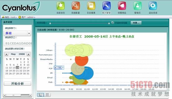 从应用融合谈网络管理思维方式的变革回顾互联网技术发展与应用历程,互联网的应用从早期、简单的文件共享、传输(FTP)、静态网页(HTML)以及Telnet等静态的、简单、小规模的应用,逐步发展到包括E-Mail、ERP、OA、视频会议、VoIP、即时通讯、网络游戏、电子商务、电子政务等动态的、大规模的、复杂的应用,网络中承载的内容变得日益复杂、多样化和更加丰富;加之网络用户的多样性,使得网络在满足包括教育学习、工作、娱乐等等不同目的的同时,对网络本身及用户的管理难度也急剧增加——网络的自由本质,导致了各种威胁的原罪,组织的网络资源得不到有效、合理的应用和控制,并引发了一系列的安全、生产力和法律问题。 应用泛滥和无序成为制约IT系统效率和安全运行的最大障碍。 我们需要通过各种技术与管理的手段对网络进行优化;在网络和安全管理的初级阶段,我们强调“三分技术、七分管理”,但随着网络与应用的发展,网络与安全管理思维方式也需要发生本质的变化:我们不能简单的将“三分技术、七分管理”,变为“五分管理、五分技术”,而是“管理与技术的融合: 技术实现管理目的;管理整合技术思路”。简言之,就是管理与技术高度融合、相辅相成。 安全与网络技术的进步,使得各种细化的管理策略(目的)实现成为可能,如实现对整个系统组织、部门,甚至单个人的个性化的、独立的安全策略与管理,实现网络安全管理与行政管理的统一、甚至实现人力资源管理评价与网络安全管理的融合,在技术的不断进步过程中,逐渐的将公司的各种规章制度与安全网络技术相结合,让技术成为实现管理目的的手段。 如行政规定的有关保密、网络作息时间管理、人员效率评价等等,都可以通过技术的手段予以管理、评价。 以青莲网络行为管理与审计系统AOS为例,AOS其本质是应用优化(Application Optimization System),具体来说,通过各种技术手段来优化网络的应用。在现今企业沟通、业务、管理高度以来IT系统的情况下,AOS的应用优化手段其实是一种具有实际效率的管理目标实现手段。 青莲AOS有四大功能,首先是访问控制功能。这个功能,从企业或者组织管理的高度来讲,是提升身产效率同时也是为了保障网络安全的手段。我们可以允许或者禁止某个人在某个时间段内炒股、玩电子游戏、下载BT、看在线电影;也可以仔细的对每个网络用户的上网行为进行授权,可以让你上某一个网站,也可以禁止。总之,我们的可以先从行政角度规定“哪些事情是不能做的,哪些事情是能做的;只能做哪些事情,坚决不能做哪些事情”,然后就可以通过青莲AOS轻松的实现。例如,以前行政规定,所有人员上班时间一律不允许上网炒股,可是在没有技术手段监管的时候,几乎所有的人都抵抗不了股市的疯狂诱惑。 同时AOS拥有网络流量管理的能力,保证最重要的应用总是能够“网络畅通”,将带宽首先用于组织的关键应用,如ERPCRM等等,而对于向普通的网页浏览、BT下载等等,可以作为次级应用来看待;这一功能,可以实现管理的“轻重缓急”策略目标,让最重要的应用,总是能够有保障。 企业在管理过程中,记录是高效管理的第一步,仔细分析是第二步,优化是更高目标的第三步。因此青莲AOS提供了一个详细记录所有网络应用的功能,它记录所有的应用状况,包括什么人在什么时间、什么地点上了什么网站、发了什么电子邮件、下载了什么文件等等,以及什么人、什么应用在什么时间段最活跃、占有的各种资源最多。 全面的访问记录可以提供详细的事后审计,为异常事故提供事后线索。 另外,AOS提供的行为轨迹分析(如下图)、排名分析等等多维分析策略,可以让管理者从多个方面看清楚在网络内部,什么人、什么应用的效率最高;什么人浪费的资源最多;什么地方可能存在网络漏洞,需要做优化调整。
