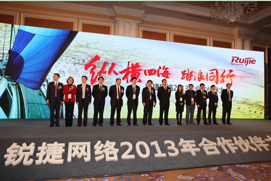 2013年锐捷网络合作伙伴大会携手相约“崛起之路”3月16日,中国网络解决方案领导品牌--锐捷网络2013年合作伙伴大会在青岛拉开帷幕。会议以“纵横四海,踏浪同行”为主题,锐捷网络在现场与1000多家合作伙伴分享了过往一年里骄人的市场业绩,并对2013年锐捷网络市场战略及渠道政策进行了深入解读。会上,锐捷网络总裁刘中东先生通过精彩演讲,深入诠释了锐捷网络“创新、团队、责任、坚持、拼搏”的核心价值观,并谈到企业的成长如同“大国崛起”之路,热切希望锐捷网络能够携手合作伙伴,共同踏上民族品牌崛起振兴之路! 3月16日,中国网络解决方案领导品牌--锐捷网络2013年合作伙伴大会在青岛拉开帷幕。会议以“纵横四海,踏浪同行”为主题,锐捷网络在现场与1000多家合作伙伴分享了过往一年里骄人的市场业绩,并对2013年锐捷网络市场战略及渠道政策进行了深入解读。会上,锐捷网络总裁刘中东先生通过精彩演讲,深入诠释了锐捷网络“创新、团队、责任、坚持、拼搏”的核心价值观,并谈到企业的成长如同“大国崛起”之路,热切希望锐捷网络能够携手合作伙伴,共同踏上民族品牌崛起振兴之路!
