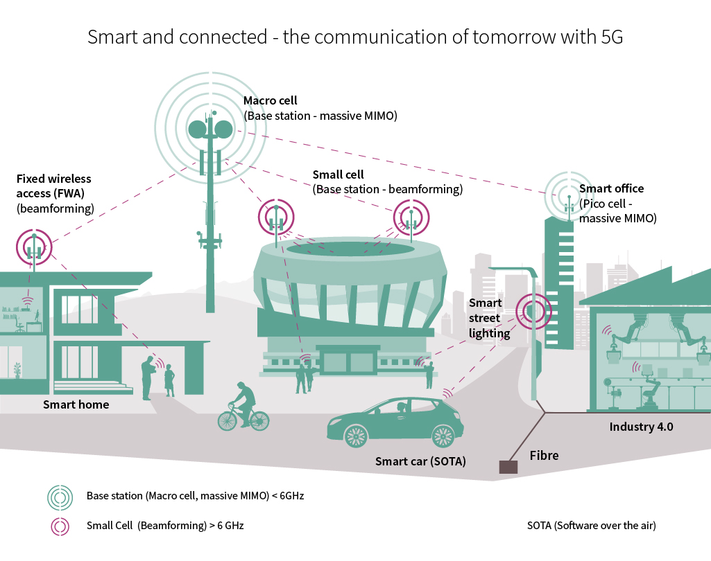 立足半个世纪的系统能力,英飞凌科技股份公司(FSE: IFX / OTCQX: IFNNY)凭借其4G技术经验,同时通过提供领先的射频技术和关键基础技术使移动基础设施和移动设备的5G愿景成为可能。英飞凌提供5G系统需要的高效集成架构。作为市场上唯一一家拥有最丰富的5G产品系列的制造商,英飞凌拥有: ·高效射频功率技术,即面向6 GHz 以上集成架构的GaN-on-SiC和GaN-on-Si技术,以及面向6GHz以下系统具有价格竞争力和高坚固性的LDMOS技术。封装技术创新使宽带集成Doherty放大器成为可能。 ·面向移动和低功率应用为基础的灵活射频解决方案,包括SiGe、BiCMOS、GaN mmW技术和RF CMOS。它们可满足优化性能要求,同时提供备选方案,包括从成本优化设计到高集成度需求。 ·面向频率高达100 GHz 的可扩展mmW解决方案,在设计阶段给予客户极大的灵活性,帮助他们缩短产品上市时间。 英飞凌已交付超过2000万颗采用波束成形技术的mmW雷达收发器,是公认的车载雷达领域创新技术的领导者。英飞凌正为实现最高空间波束精度的相移技术铺平道路,使大规模MIMO系统和基于多阵列的系统成为可能。同时,英飞凌继续投入宏基站、小基站、回程和终端用户设备等网络领域。