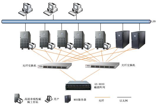 宝德存储引领三网融合,创广电新发展利用数字技术,广电行业可以把以前重复的、手工的流程改变为自动的、并行的制作和管理流程,提高节目制作和管理效率,降低制作成本,减少从节目制作到节目播出的时间,提供巨大的多媒体内容处理能力和无限的视觉效果。 一.需求分析 广播电视业正在发生一个从模拟到数字化的变革。数字化不仅提高广播电视节目制播的效率和质量,也给广播电视提供了新的传播方式,为各种内容发布的新终端商务模式提供了可能性。 在中国,广播电视的数字化从小规模的试探,到核心业务的渗透,到现在向网络化、互联互通、全程无磁带化发展。数字化已是广播电视必然的发展趋势。 数字化技术从根本上改变了影视节目的制作、管理、存储和分发方式。利用数字技术,广电行业可以把以前重复的、手工的流程改变为自动的、并行的制作和管理流程,提高节目制作和管理效率,降低制作成本,减少从节目制作到节目播出的时间,提供巨大的多媒体内容处理能力和无限的视觉效果。 从磁带到比特,数字系统具备强大的 IT 成分。以 IT 为核心也将是广播电视全面数字化的趋势。 二.方案拓扑 三、方案描述 存储设备是高清非线性编辑制作网或媒体系统资源中的一个重要组成不分,宝德GS-8810全光纤磁盘阵列是保证系统的安全、稳定和高效运行。 宝德GS-8810磁盘阵列是最新推出一款高性能的部门级8Gb交换式存储系统。系统的多协议连接性和模块化架构支持8Gb/s光纤通道 (8G FC) 和 1Gb/s iSCSI 主机接口,可以在需求发生变化时按需配置,有助于降低采购及运营成本,3700MB/s的传输速度完全可以满足客户对高速调取数据的需求,GB 的电池供电缓存为数据的安全性提供了完美的保障。兼容多种操作系统,并且支持存储分区(SANshare)、快照(Snapshot)、卷拷贝(Volume copy)及同步镜像(RVM)等软件功能。 由于广电行业对数据读取速度的要求比较高,宝德GS-8810高带宽高IO能够满足此行业的需求。存储子系统是考虑数字化建设的直接切入点。无论是对核心业务的整体数字化规划还是对子系统的各自建设,都提出了对 IT 基础架构中的存储需求。 高性能:本产品采用Intel Xscale 1.2GHz RISC处理器,支持4GB缓存,提供8个8G主机端口,或可选 1Gbps iSCSI 接口,数据传输率1600MB/s,I/O事务处理可达到200,000 IOPS 可扩展性:此套方案为了满足以后系统的扩容或者扩展前端服务器数量,采用先进的SAN架构,不仅满足了高传输还提供了高扩展。 可靠性:从磁盘阵列内部来讲,内部采用全光纤、全冗余的系统设计,所有部件支持热插拔,支持冗余双主机通道的独立工作,从整体构架来讲,SAN构架具有稳定的数据传输协议,满足了不同类型用户对数据存储的需求。 简便的管理:基于Java 图形界面的动态存储管理软件SANtricity可以通过SAN或LAN在单一地点对多套不同的宝德光纤存储系统进行配置、监控和在线管理。 责编:流沙 ![]() 著作权声明:畅享网文章著作权分属畅享网、网友和合作伙伴,部分非原创文章作者信息可能有所缺失,如需补充或修改请与我们联系,工作人员会在1个工作日内配合处理。 |