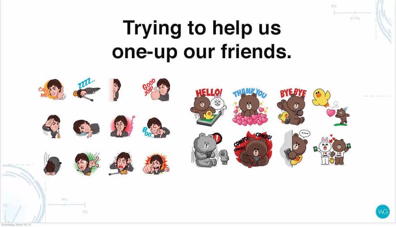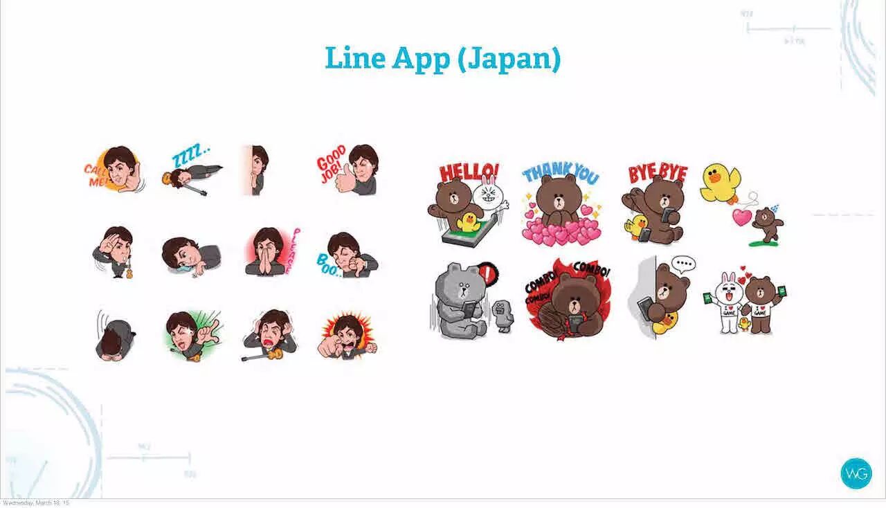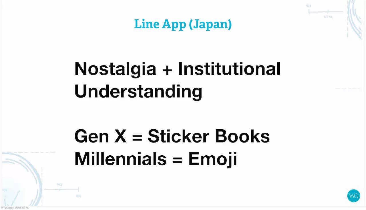 如:日本的Line, 上一代喜欢贴纸书,而千禧一代则喜欢表情符号。