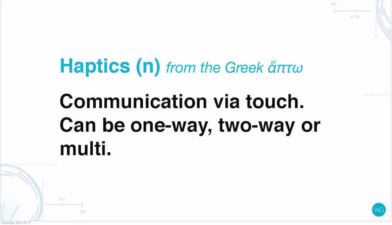 ![]() Haptics,名词,源自希腊语,意为“通过触觉进行交流”。这种交流可以是单向的、双向的,甚至是多向的。
