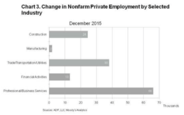 ADP全美就业报告:12月私营企业就业人数增25.7万ADP发布了2015年12月《全美就业报告》,报告显示,从11月到12月,美国私营企业就业人数增加25.7万。《ADP全美就业报告》由国际领先的人力资本管理解决方案供应商ADP与穆迪分析公司联合制作完成。报告来自ADP的实际支付薪酬数据,是在季节性调整的基础上,反映美国非农私企每月总的就业人数变化情况。 ADP发布了2015年12月《全美就业报告》,报告显示,从11月到12月,美国私营企业就业人数增加25.7万。《ADP全美就业报告》由国际领先的人力资本管理(HCM)解决方案供应商ADP与穆迪分析公司(Moody’s Analytics)联合制作完成。报告来自ADP的实际支付薪酬数据,是在季节性调整的基础上,反映美国非农私企每月总的就业人数变化情况。 注:由于部分数据做了四舍五入处理,所以数据的总和可能不等于总数 12月,雇员人数少于49人的小型企业增加了95,000个工作岗位,高于11月的所修正的72,000个工作岗位。企业规模在50-499名雇员的中型企业增加了65,000个工作岗位,比上月的上升了10%。规模在500或以上雇员的大型企业12月份就业人数有97,000个工作岗位,相比11月份的80,000个工作岗位有所上升。规模在500—999名雇员的企业12月份,增加了39,000个工作岗位。雇员超过1000名员工的公司新增58,000个工作岗位。