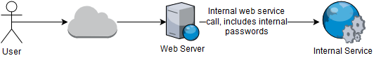 但在漏洞环境中,用户可以要求网络服务器通过用户选择的服务器代理对外请求,这样就能命令网络服务器将所有对外请求发送到特定的服务器上,而不是直接发送到目的地。以下作用示意图: 可以看到,包括所有密码在内的内部请求信息现在发送到了用户控制的代理服务器上,而不是内部服务器。在这种情况下,用户可以使用这些密码越权访问内部数据库或文件,这将带来灾难性的后果。